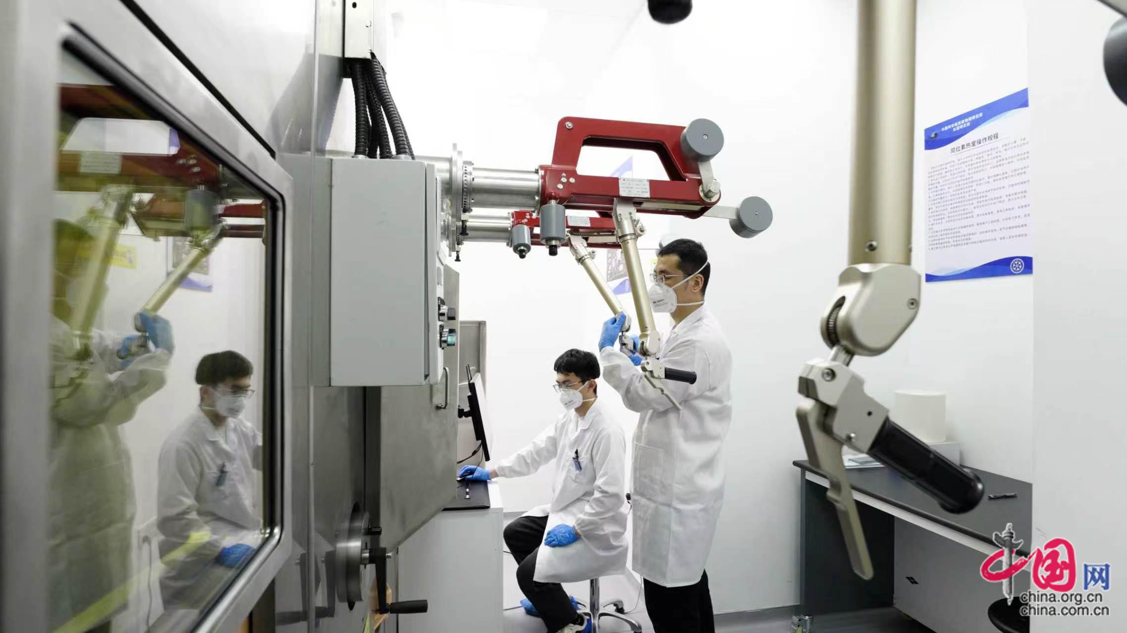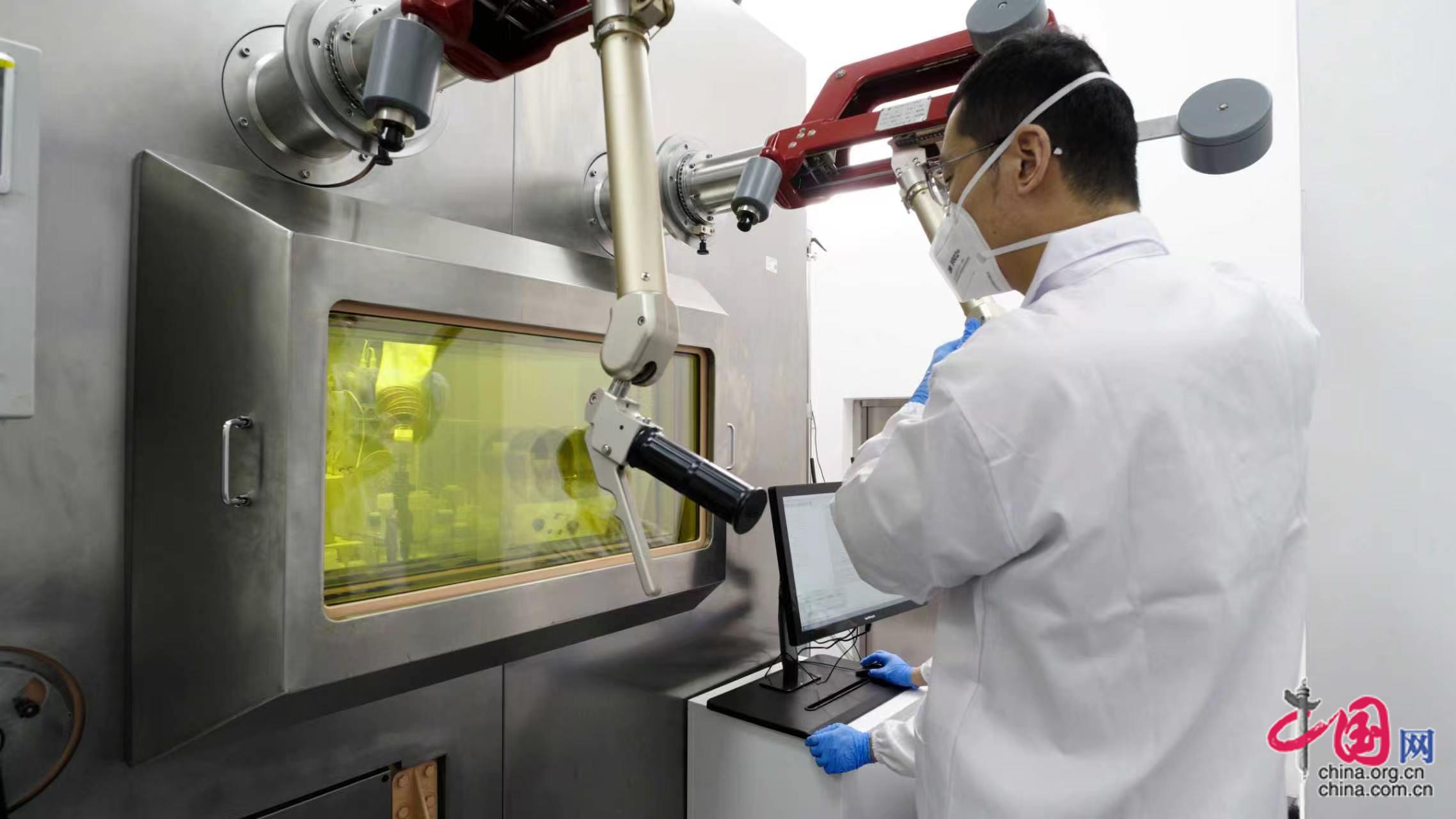 图为科研人员通过屏蔽热室机械手远程操作关键医用α同位素分离。(供图:中国科学院高能物理研究所)