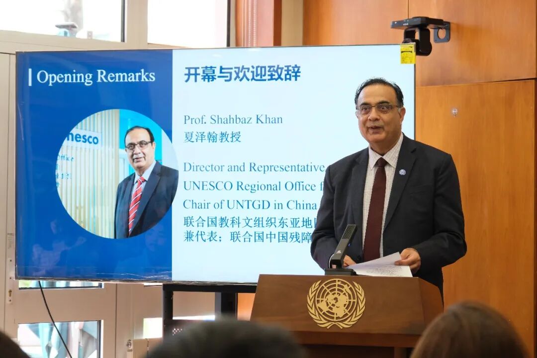 图为联合国教科文组织东亚地区办事处主任兼代表、联合国中国残障主题组主席夏泽翰致辞。(供图:联合国教科文组织)