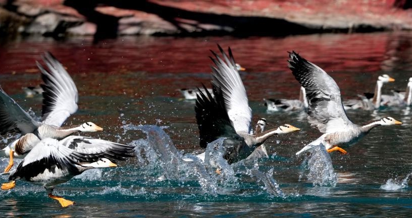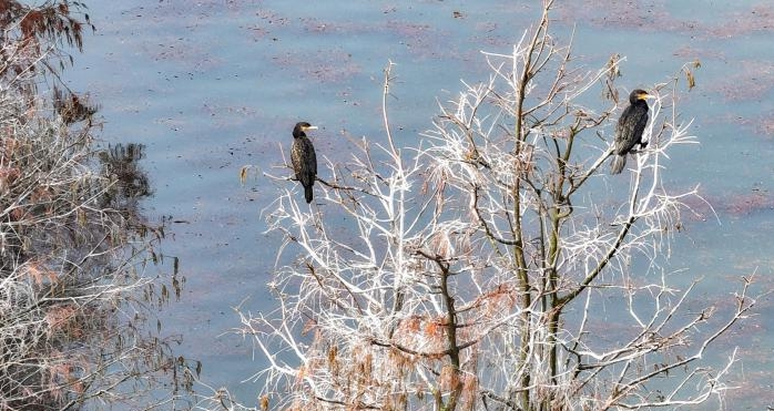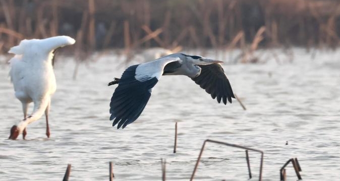 江西南昌:成群候鸟鄱阳湖畔栖息觅食