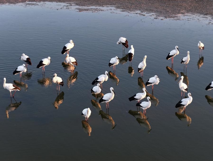 河北丰南:东方白鹳沿海湿地舞蹁跹