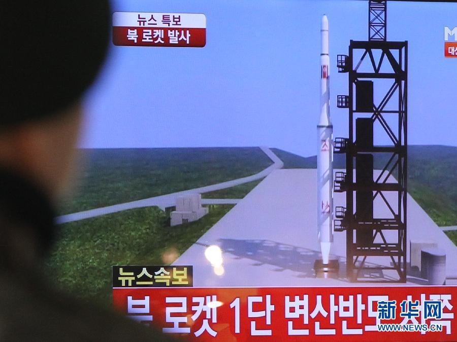 12月12日,在韩国首尔,市民在观看朝鲜发射火箭的新闻。当日,据朝中社报道,朝鲜“光明星3号”卫星发射成功,卫星进入预定轨道。 新华社发(朴真熙摄)