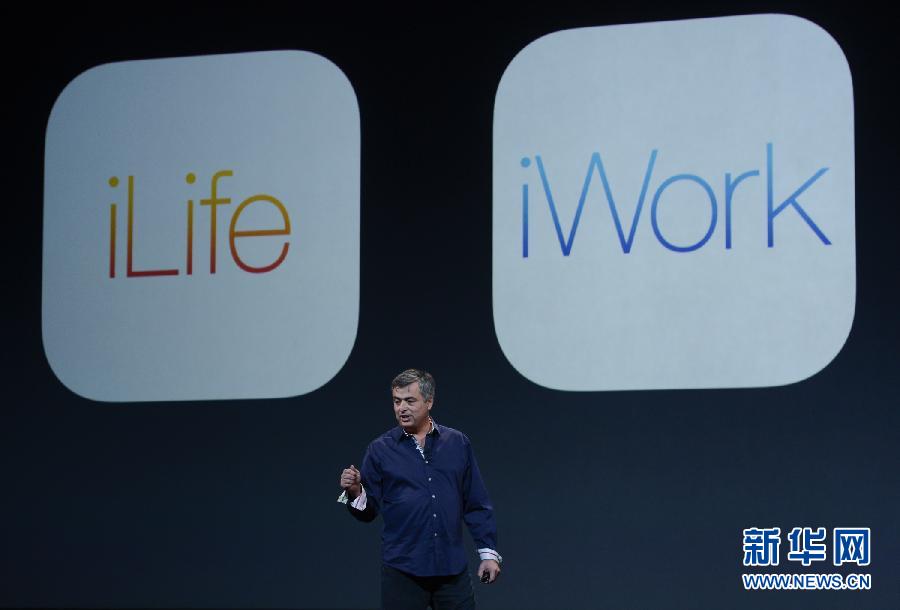 10月22日,苹果公司副总裁艾迪·库在美国旧金山举行的新品发布会上。 当日,苹果公司在美国加州的旧金山举行新品发布会。新华社发