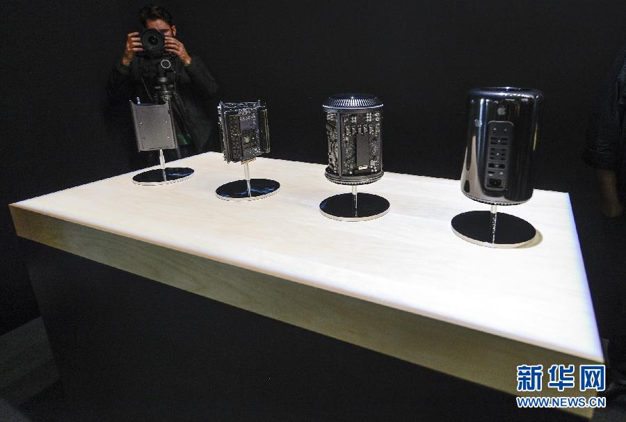10月22日,一位摄影师在拍摄苹果公司发布会期间展示的Mac Pro产品。 当日,苹果公司在美国加州的旧金山举行新品发布会。新华社发