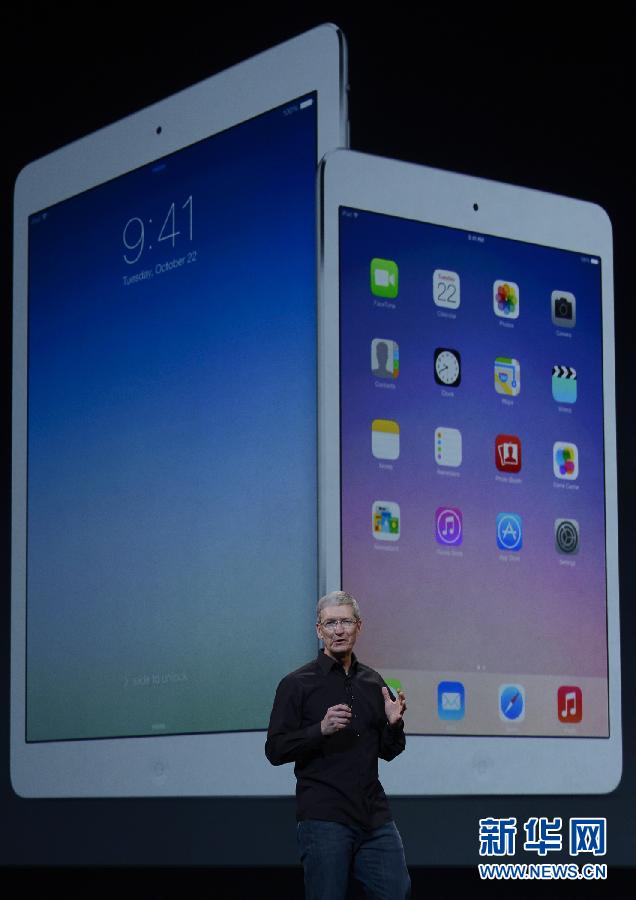 10月22日,苹果公司CEO蒂姆·库克在美国旧金山举行的新品发布会上介绍iPad系列新产品。当日,苹果公司在美国加州的旧金山举行新品发布会。新华社发