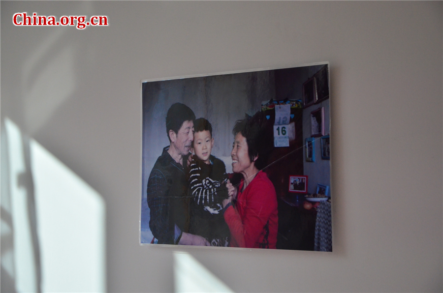高俊平的卧室里挂着一张自己和老伴、小孙子在棚户区老房子的合影。中国网 弓迎春 摄