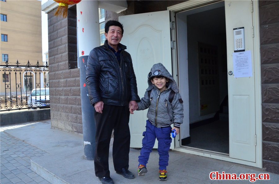 高俊平带着孙子高宇博出门玩耍。中国网 弓迎春 摄