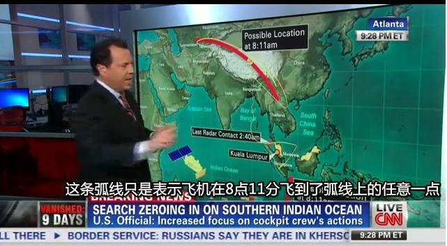 但飞机中途飞行方向不确定。只能表明飞机在8点11分时该飞机飞到卫星所探测的弧线上任意一点。