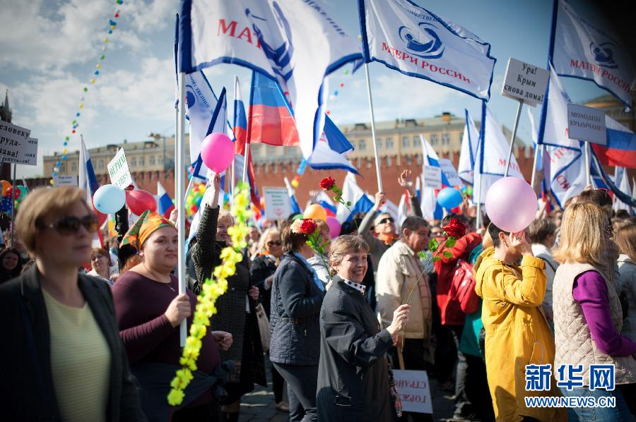 5月1日,在俄罗斯首都莫斯科,人们在红场参加劳动者大游行。当日,逾10万人参加了莫斯科市中心的五一劳动者大游行。新华社记者戴天放摄