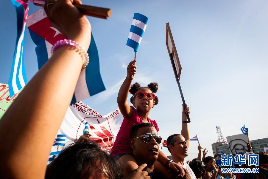 5月1日,古巴各界群众在首都哈瓦那的革命广场参加游行。 当日,古巴举行盛大游行,庆祝“五一”国际劳动节。据当地媒体消息,约有60万人参加了这一活动。新华社记者刘彬摄