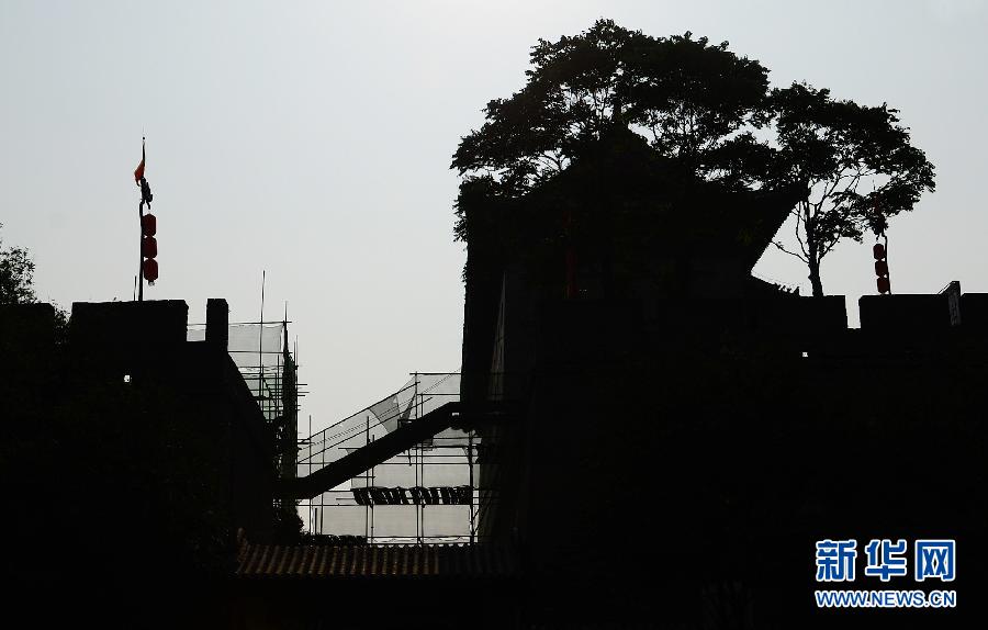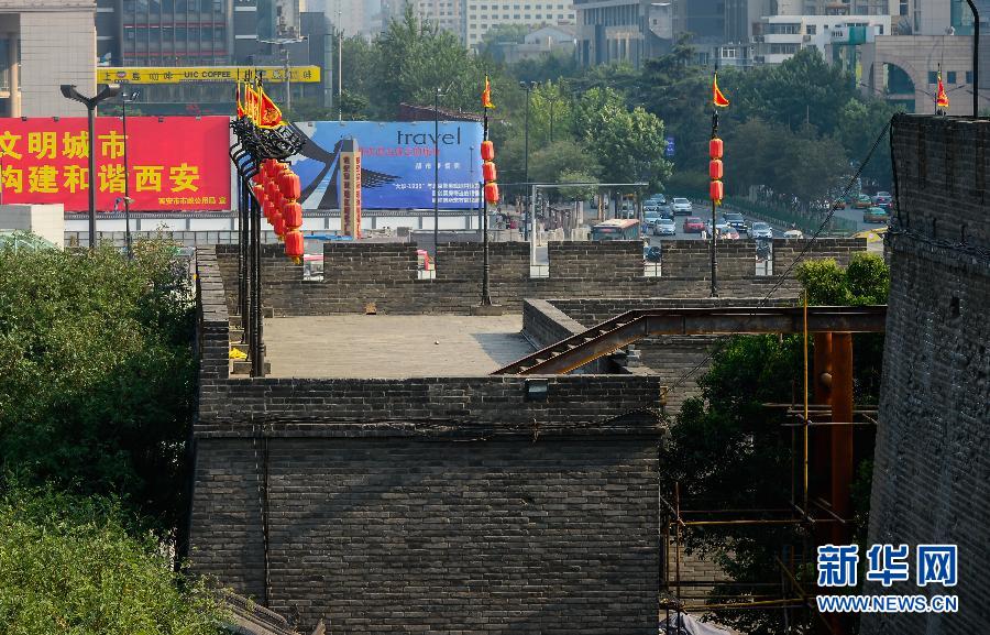 这是7月6日拍摄的施工现场。近日,具有600多年历史的西安城墙南门瓮城城墙上修建电梯一事,引发民众质疑,担心这种“混搭风”将破坏文物的完整性及观赏性。西安城墙景区表示,修建电梯是为了进一步完善游览辅助设施,提升整体服务功能,充分考虑社会各界和游客的意见后,景区在月城空地一角,本着“不占用、不破坏城墙本体”的原则,采用轻质、可逆的材料工艺,完善老年人、残障人士登城辅助设施轻质电梯。作为全国重点文物保护单位,西安城墙的维修或者修建都需经过国家文物部门审批,西安市文物局相关负责人介绍,之前曲江城墙管委会向文物部门申报过修电梯的方案,但当时只提供了设计草图,很多相关的资料不完备,现在施工属于手续不全的行为,西安市文物局已要求其立即停工,完善相应的报批手续。而直至记者采访时,施工还在继续。新华社记者刘潇 摄