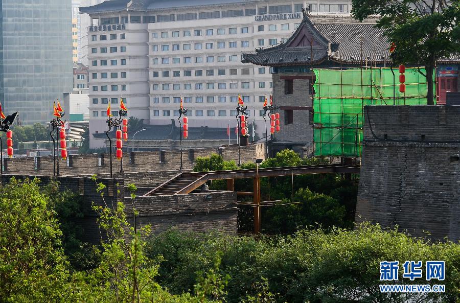 这是7月6日拍摄的施工现场。近日,具有600多年历史的西安城墙南门瓮城城墙上修建电梯一事,引发民众质疑,担心这种“混搭风”将破坏文物的完整性及观赏性。西安城墙景区表示,修建电梯是为了进一步完善游览辅助设施,提升整体服务功能,充分考虑社会各界和游客的意见后,景区在月城空地一角,本着“不占用、不破坏城墙本体”的原则,采用轻质、可逆的材料工艺,完善老年人、残障人士登城辅助设施轻质电梯。作为全国重点文物保护单位,西安城墙的维修或者修建都需经过国家文物部门审批,西安市文物局相关负责人介绍,之前曲江城墙管委会向文物部门申报过修电梯的方案,但当时只提供了设计草图,很多相关的资料不完备,现在施工属于手续不全的行为,西安市文物局已要求其立即停工,完善相应的报批手续。而直至记者采访时,施工还在继续。新华社记者刘潇 摄