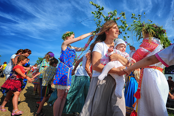 中国网7月8日讯据俄罗斯媒体报道,7月7日,俄罗斯民众欢庆伊万·库帕拉节,举办编花环、跳火堆和各类竞赛活动。伊万·库帕拉节是最古老的斯拉夫多神教节日之一,在东正教俄历夏至这一天进行,被视为一个让人成长,帮助人们洗涤心灵的传统节日。