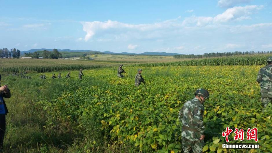 2014年9月4日14时许,接到政府通知称,在哈尔滨市延寿县百合村和兴隆村交界处的玉米地里发现“9.2”杀警脱逃案件3名A级通缉犯之一高玉伦的行踪。15时许,数百名武警赶到现场,每五米一人,荷枪实弹对玉米地进行封堵。图为警方开始进行搜捕。史轶夫摄