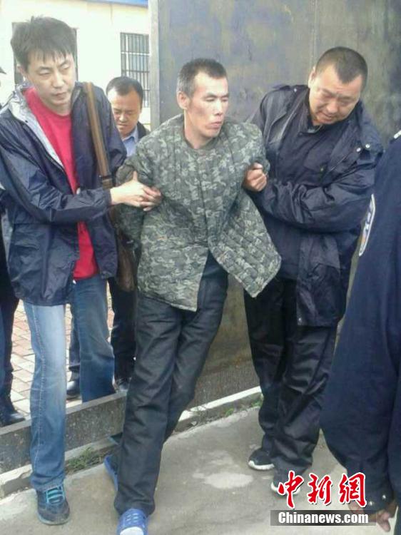 9月4日0时50分许,警方在黑龙江延寿县青川乡新胜村将“9.2”杀警脱逃案件3名A级通缉犯之一王大民抓获。此前另一名通缉犯李海伟已经落网,目前仍有一名通缉犯高玉伦在全力抓捕中。图为王大民被捕。