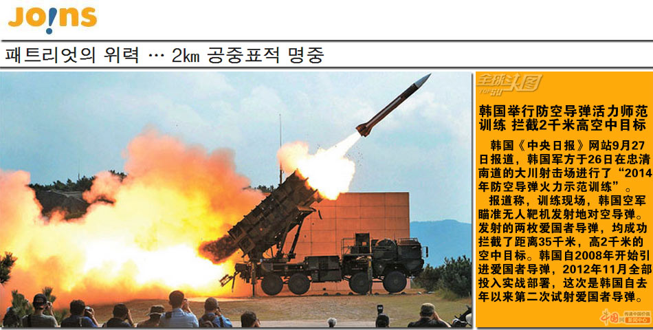 韩国《中央日报》网站9月27日报道,韩国军方于26日在忠清南道的大川射击场进行了“2014年防空导弹火力示范训练”。