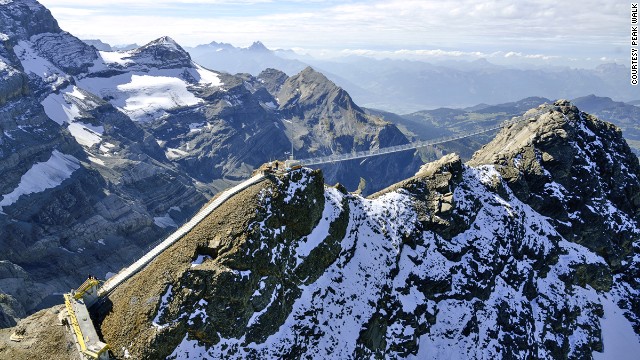 1、巅峰之行(Peak Walk) 瑞士伯尔尼高原 世界首座连接阿尔卑斯山内两座冰川山峰Glacier 3000及Scex Rouge 的悬索桥巅峰之行(Peak Walk)在瑞士建成并将全年开放。该桥全长有107米,耗资2百万美元(约合0.12亿人民币)。从悬索桥上的观景台上可以观赏到著名的勃朗峰、马特洪峰、艾格尔峰和少女峰。阿尔卑斯山的冰川风光一览无遗。【环球网综合报道】