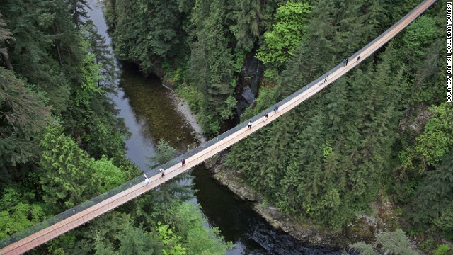 6、卡皮拉诺悬索桥(Capilano Suspension Bridge) 加拿大温哥华 卡皮拉诺悬索桥共有137米长,横跨于70米宽的卡皮拉诺河之上。它最初是在1889年由苏格兰工程师乔治格兰特麦凯建造,但在1956年被完全重建。它是温哥华最古老同时也最受欢迎的景点,每年吸引了约70万名游客。