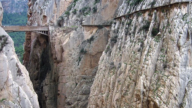 9、国王小径(El Caminito Del Rey) 西班牙马拉加 步道最初是为附近Chorro瀑布和Gaitanejo瀑布处发电站的职工而修建。步道仅一米宽,旁边就是100米深的峡谷,并且仅仅经过简单翻修后就向游客开放了。即便如此,仍有不少寻求刺激的勇敢者前往。但由于两起死亡事故,国王步道正式对游客关闭。近日,该地区正在进行修复,并定于2015年向公众开放。