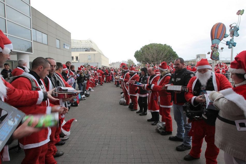 法国数百名圣诞老人骑摩托车分发礼物(组图)