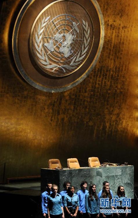 2012年1月27日,在位于美国纽约的联合国总部联大会议厅举行的纪念活动上,学生们吟唱纪念歌曲。 新华社记者申宏摄图片来源:新华网