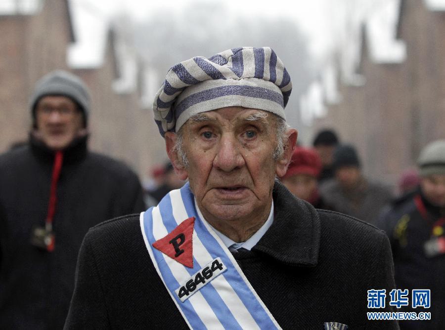 2014年1月27日,在波兰南部奥斯威辛市附近,一名大屠杀幸存者参加奥斯威辛集中营解放69周年纪念活动前在集中营内行走。图片来源:新华网