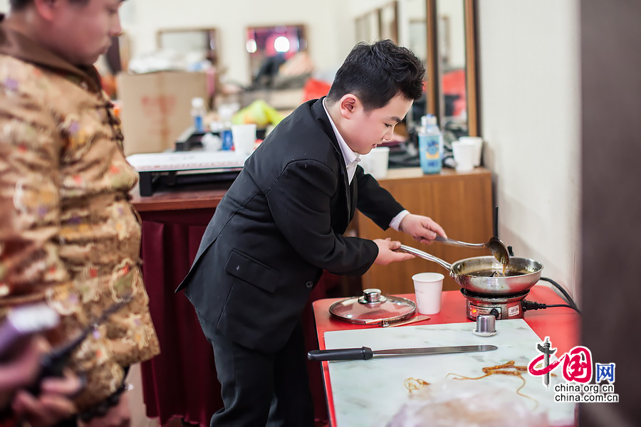 彩排结束后很多袖珍演员并没有休息,匆匆的吃了晚饭就继续投入到挽回的准备工作中去了。中国网记者 郑亮摄影