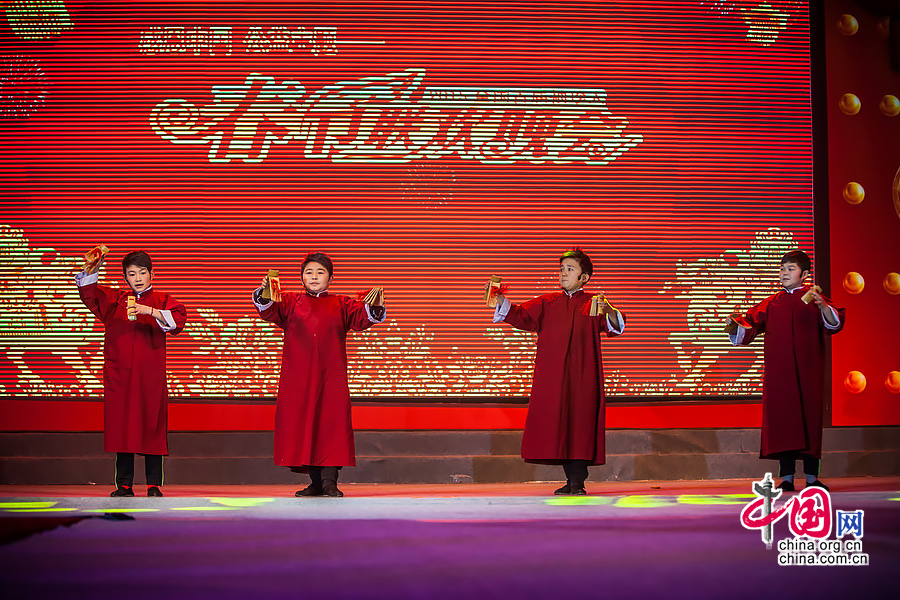 2015年2月2日,中国首届“袖珍人”春晚在北京举办,本次“袖珍人”春晚一共有来自全国各地的80多为位袖珍演职员。他们自编自导自演了20余个节目,用自己的方式,向全国人民拜年。图为快板《数唱祖国》。中国网记者 郑亮摄影