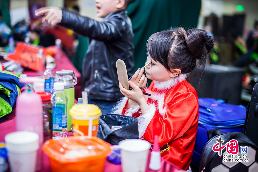 彩排结束后很多袖珍演员并没有休息,匆匆的吃了晚饭就继续投入到挽回的准备工作中去了。中国网记者 郑亮摄影