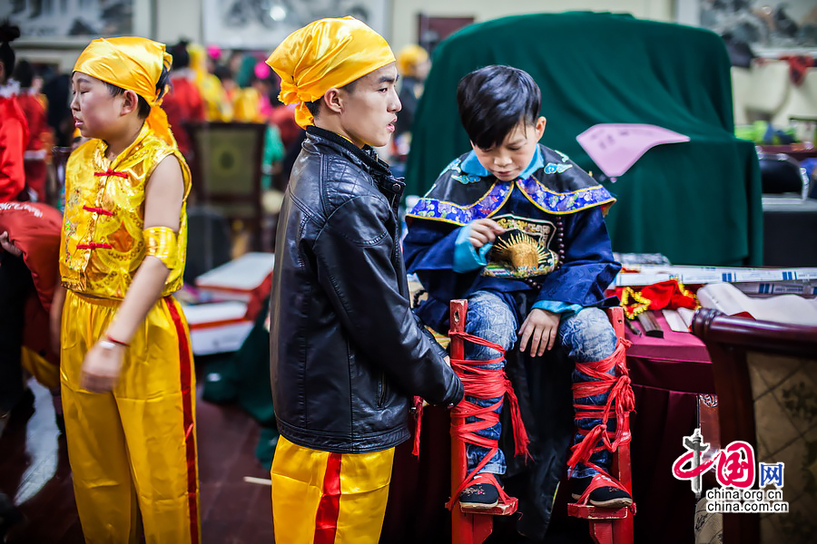 彩排结束后很多袖珍演员并没有休息,匆匆的吃了晚饭就继续投入到挽回的准备工作中去了。中国网记者 郑亮摄影