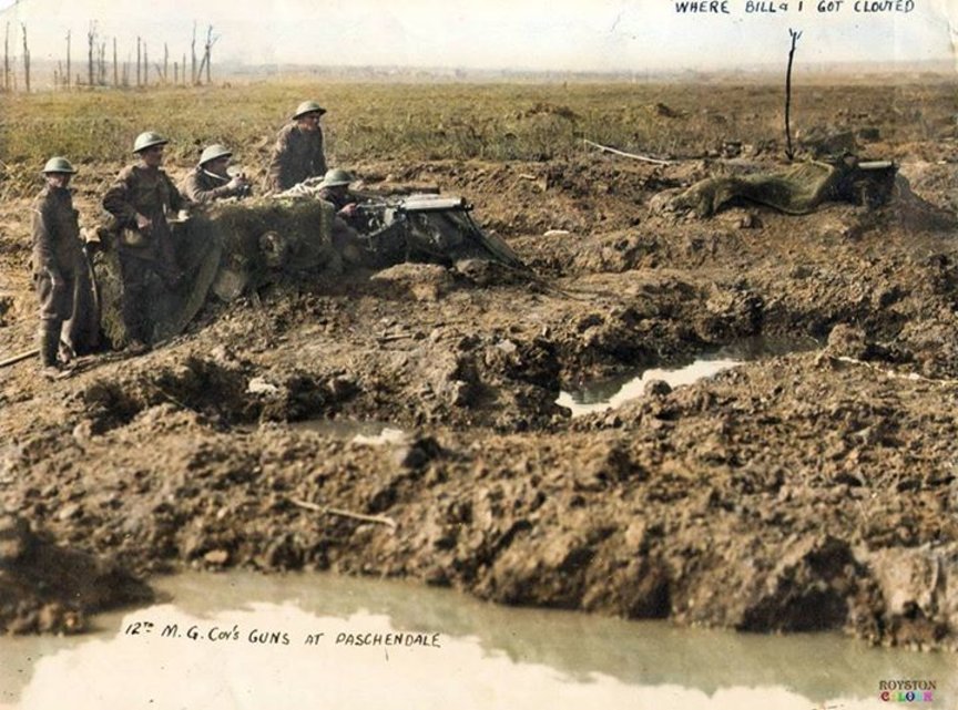 1917年9月28日,帕斯尚尔战役上,澳大利亚籍士兵正在一机关枪前准备射击。(网站截图)