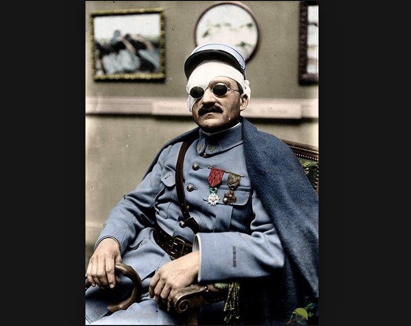 图为曾创办雷恩美术学院的著名绘画家让-朱利安·雷默尔当(1878-1968),其在一战的阿尔图瓦战役中右眼失明。照片摄于1917年。(网站截图)