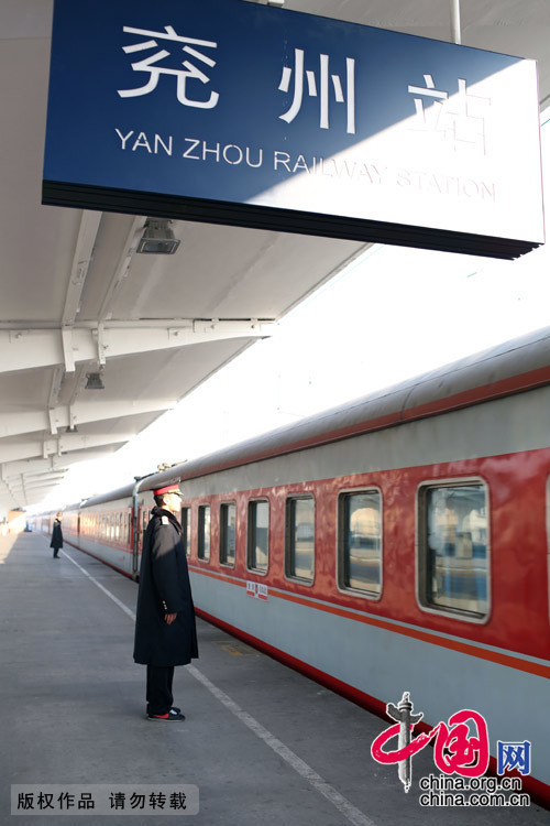 2月11日下午3点50分,工作在兖州车务段接车岗位的孙腾。中国网图片库郭志华摄影