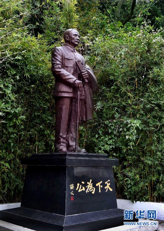 园矗立在珠海中山公园正门内的孙中山先生铜像(2014年1月27日摄)。