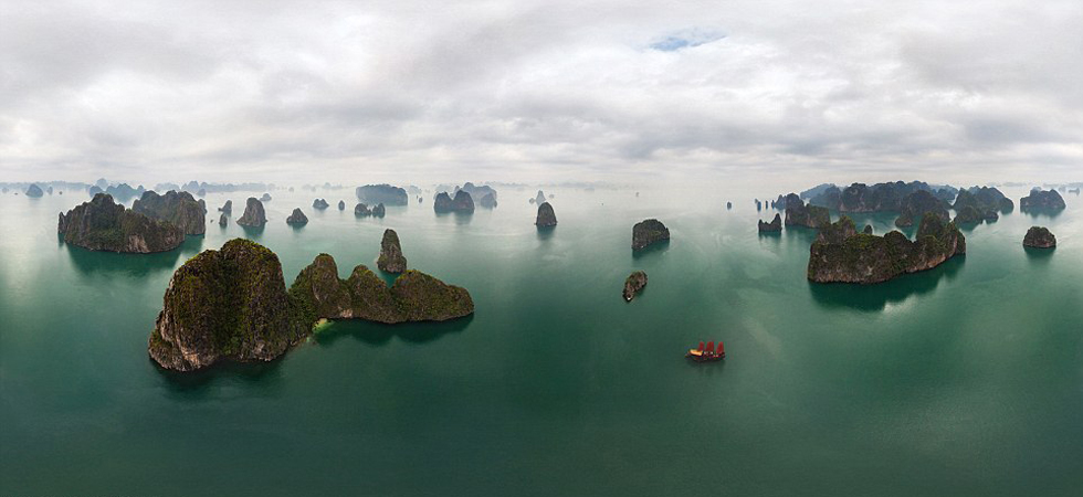 从上空抓拍越南湾中的Ha Long island奇迹。(网页截图)
