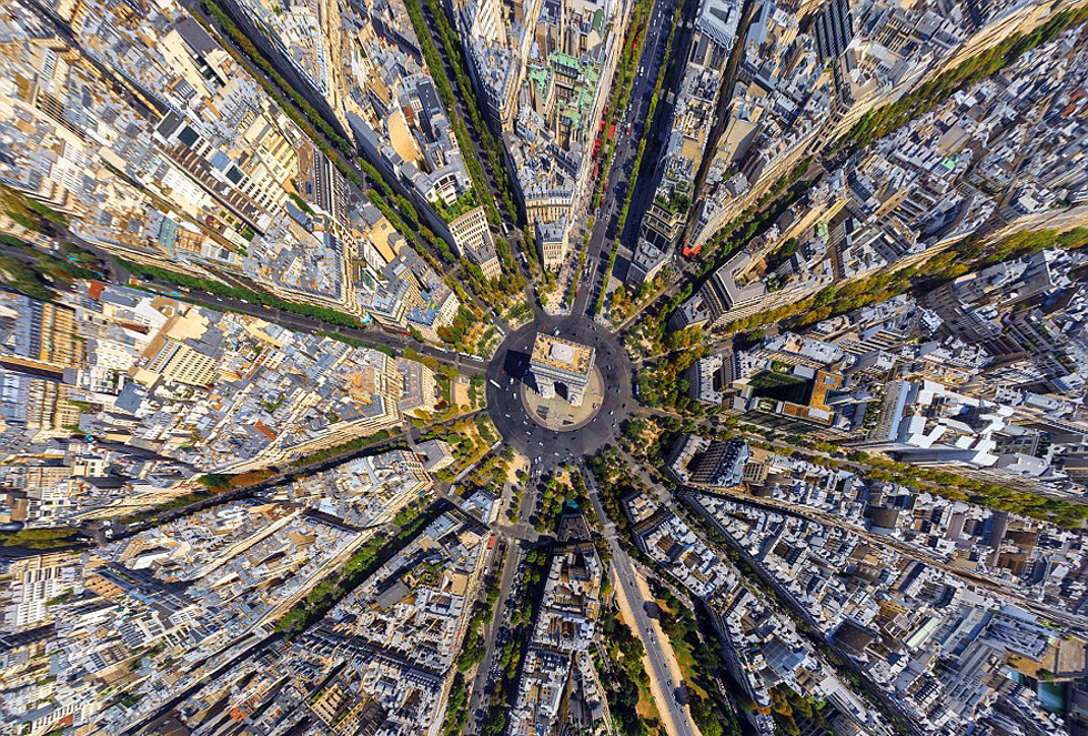 最初看这张照片可能让人觉得困惑,但实际上它是从顶部拍摄的巴黎凯旋门。(网页截图)
