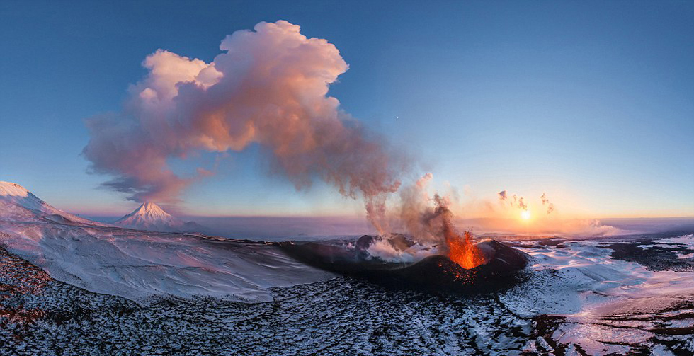 AirPano团队在俄罗斯堪察加半岛抓拍到独一无二的Plosky Tolbachik火山喷发场景。(网页截图)