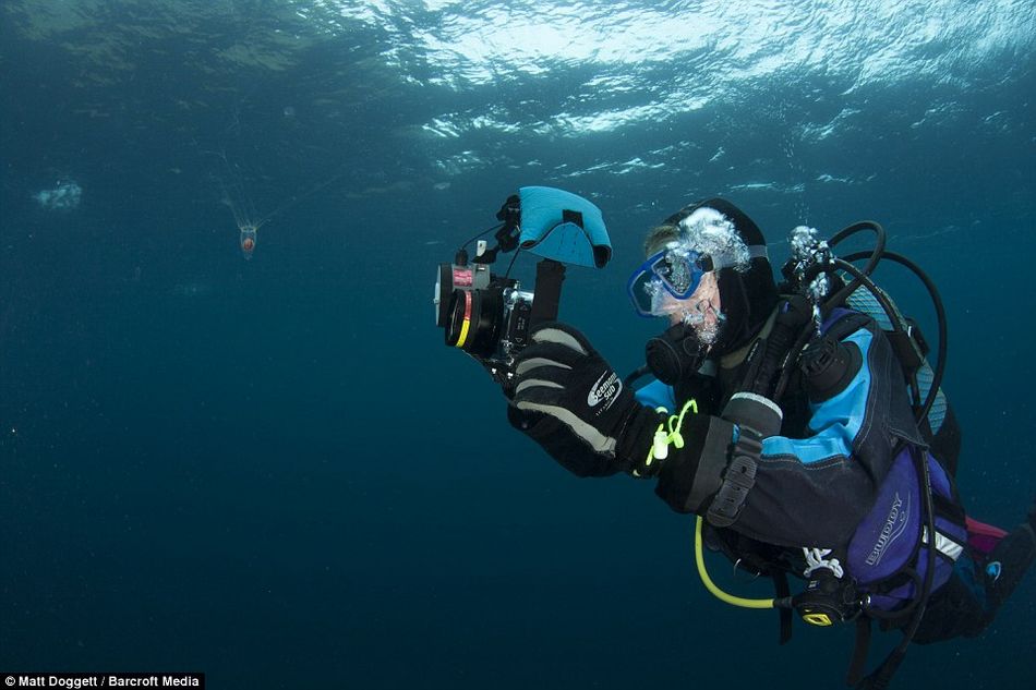 潜水员Doggett先生正在海底进行拍摄。(网站截图)