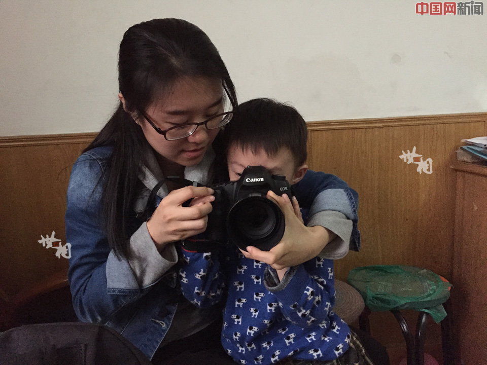 看到相机时,小雨对它产生了好奇,跑过来,教他如何使用后,他很聪明地按下快门。