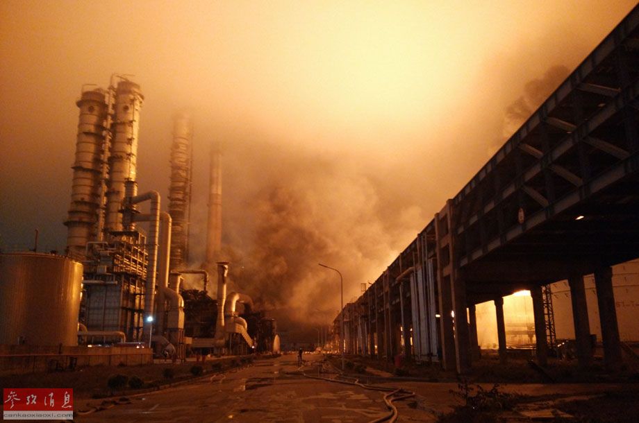 福建漳州PX项目大火三度复燃 1个储油罐被烧塌