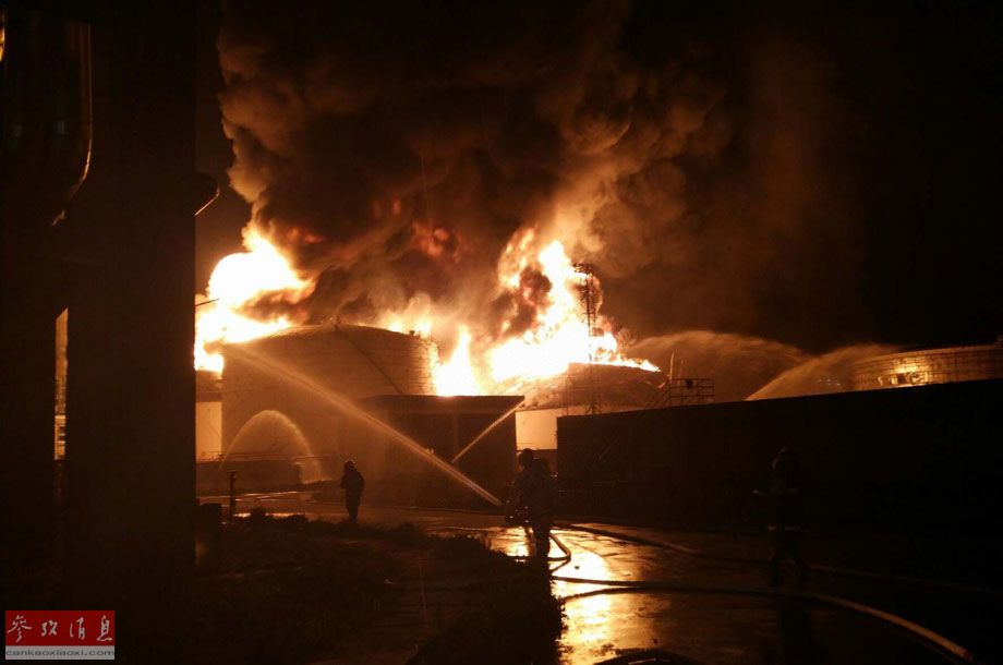 4月6日夜,消防人员在爆炸事故现场救援(手机拍摄)。据福建省安监局消息,4月6日18时56分许,漳州市古雷腾龙芳烃二甲苯装置发生漏油起火事故,已致6人受伤,其中5人被玻璃刮伤,已送医院救治。新华社发
