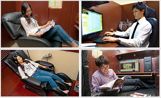 包厢内部环境优越,种类多样。有的包厢适合休息,有皮质靠椅或者按摩椅;还有的包厢适合学习或者工作;也有日式榻榻米的包厢,需要脱鞋才能进入使用。