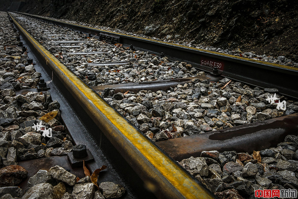 3月23日,滇越铁路宜良至华宁段,雨水将铁轨的锈色冲刷了出来。