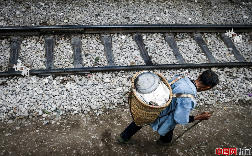 4月1日晨,滇越铁路湾塘站附近的小贩从铁道边走过准备去摆摊。