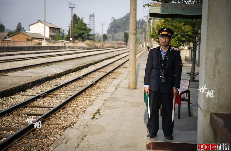 3月21日,水塘站的职工郭汉文。他原是一名军人,1981年退伍后回到了家乡——水塘站旁的新发村。此时,在铁路上工作的父亲退休,让他继承“衣钵”成为一名铁路工人。自那时起,他在水塘站呆了34年。
