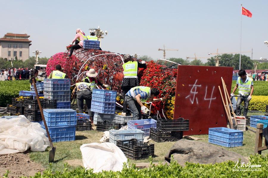 天安门广场 花坛 花柱 海绵材料 五一 花卉 抗日战争 游客 花材 滴灌技术