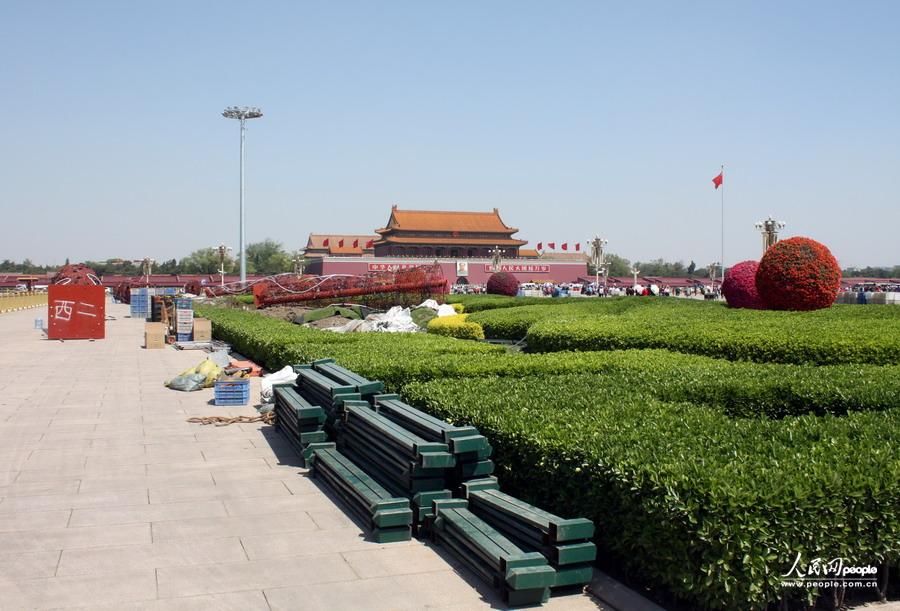 北京天安门广场“五一”花坛设计效果初显