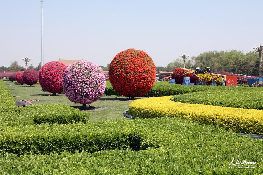 北京天安门广场“五一”花坛设计效果初显