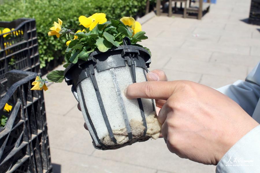 4月24日,天安门广场花坛施工负责人正在说明滴灌技术。诸嘉薇 摄