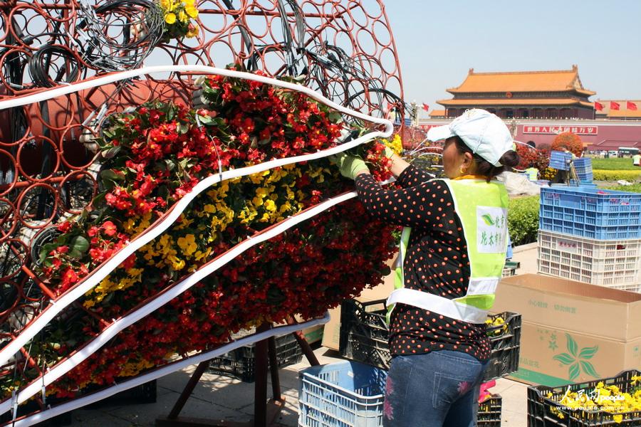 天安门广场 花坛 花柱 海绵材料 五一 花卉 抗日战争 游客 花材 滴灌技术