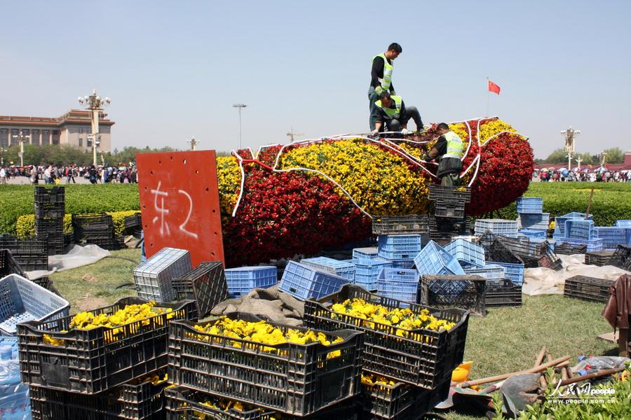 天安门广场 花坛 花柱 海绵材料 五一 花卉 抗日战争 游客 花材 滴灌技术